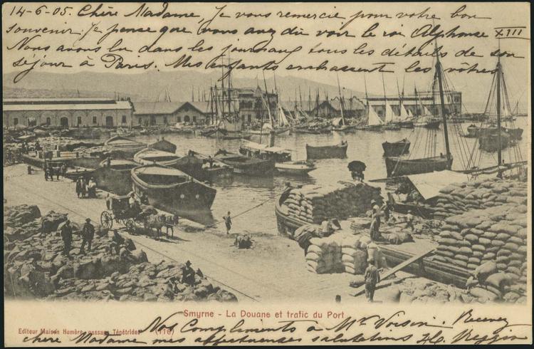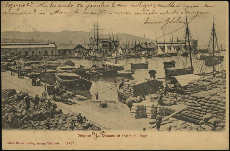 Το κτίριο που απεικονίζεται σε διάφορες φωτογραφίες της εποχής, ήταν έργο της γαλλικής Εταιρείας Societe des Quais de Smyrne… που είχε αναλάβει συνολικά το έργο της διευθέτησης του λιμένα, της προκυμαίας και διαφόρων απαραιτήτων έργων για την εύρυθμο και σύγχρονη λειτουργία της πόλης.