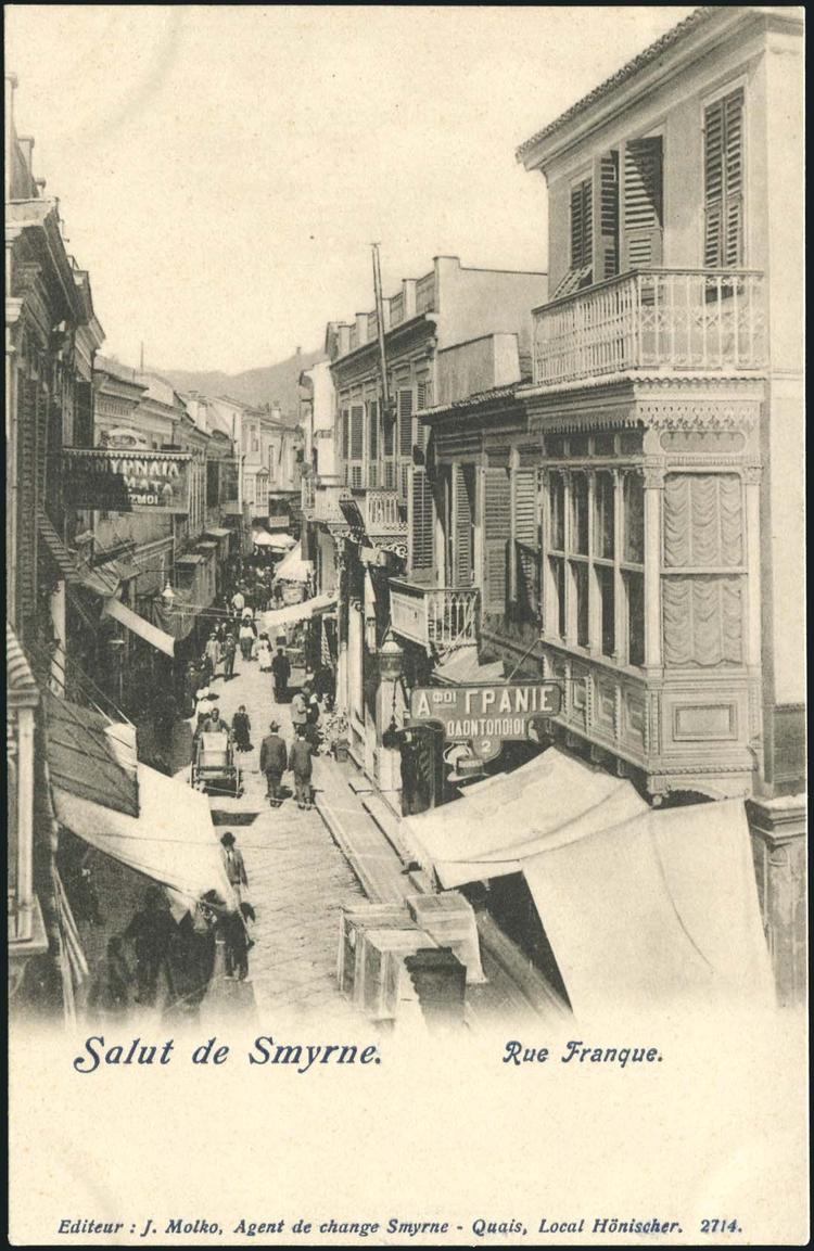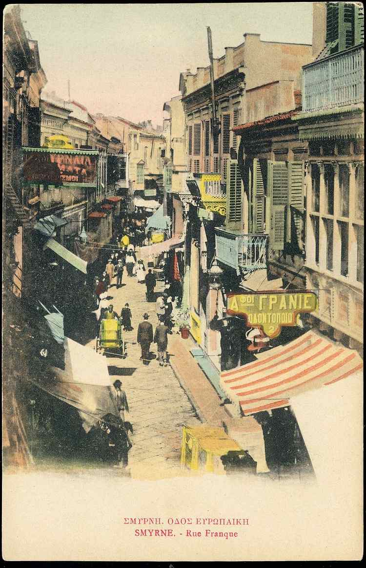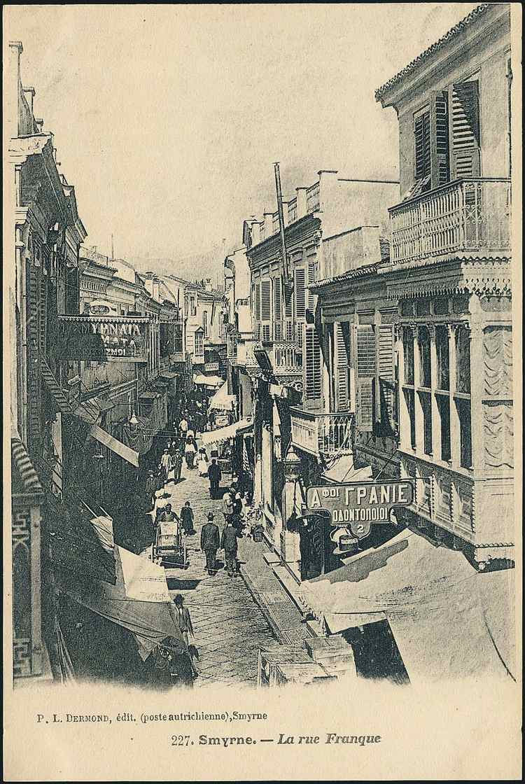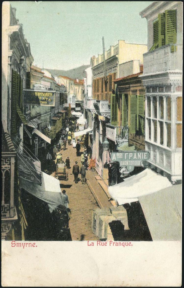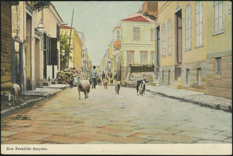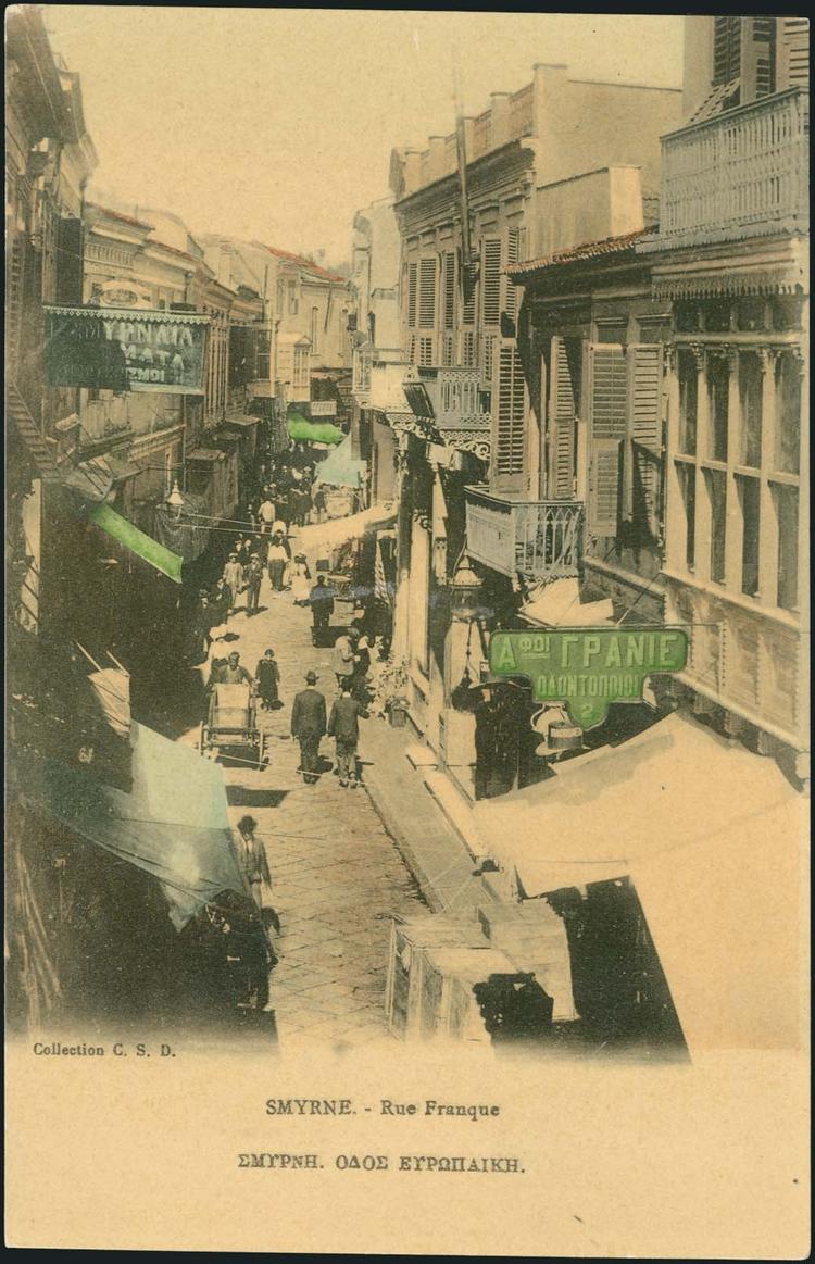 Σύμφωνα με τις μαρτυρίες αλλά και το σωζόμενο φωτογραφικό υλικό, οι δρόμοι της Σμύρνης, εκτός από ελάχιστους που είχαν σχετικά μεγάλο φάρδος, στο σύνολό τους ήταν στενοί και τεθλασμένοι, πάντα όμως καθαροί, λιθόστρωτοι με πλάκες μαλτέζικες ή και καλντερίμια.