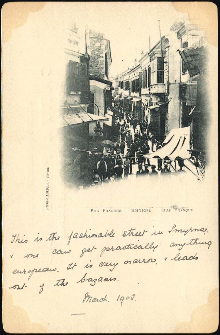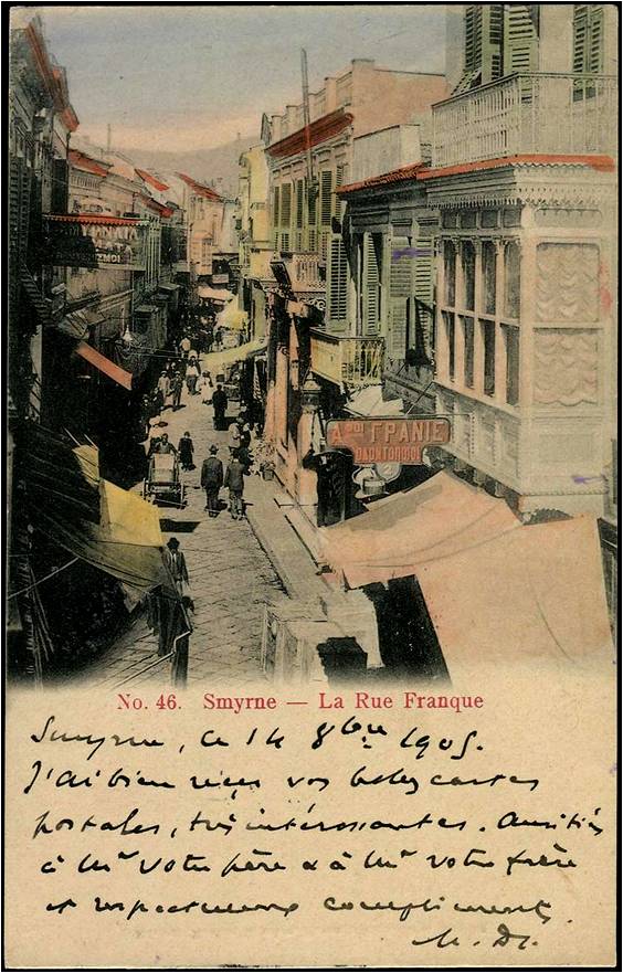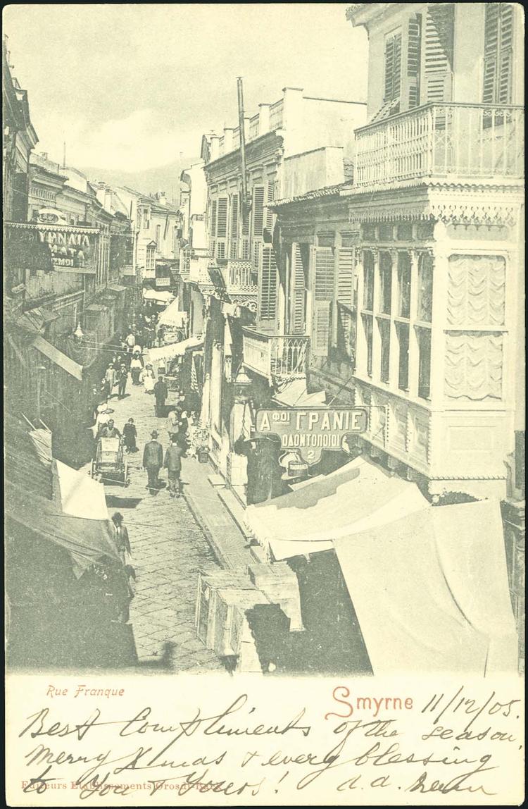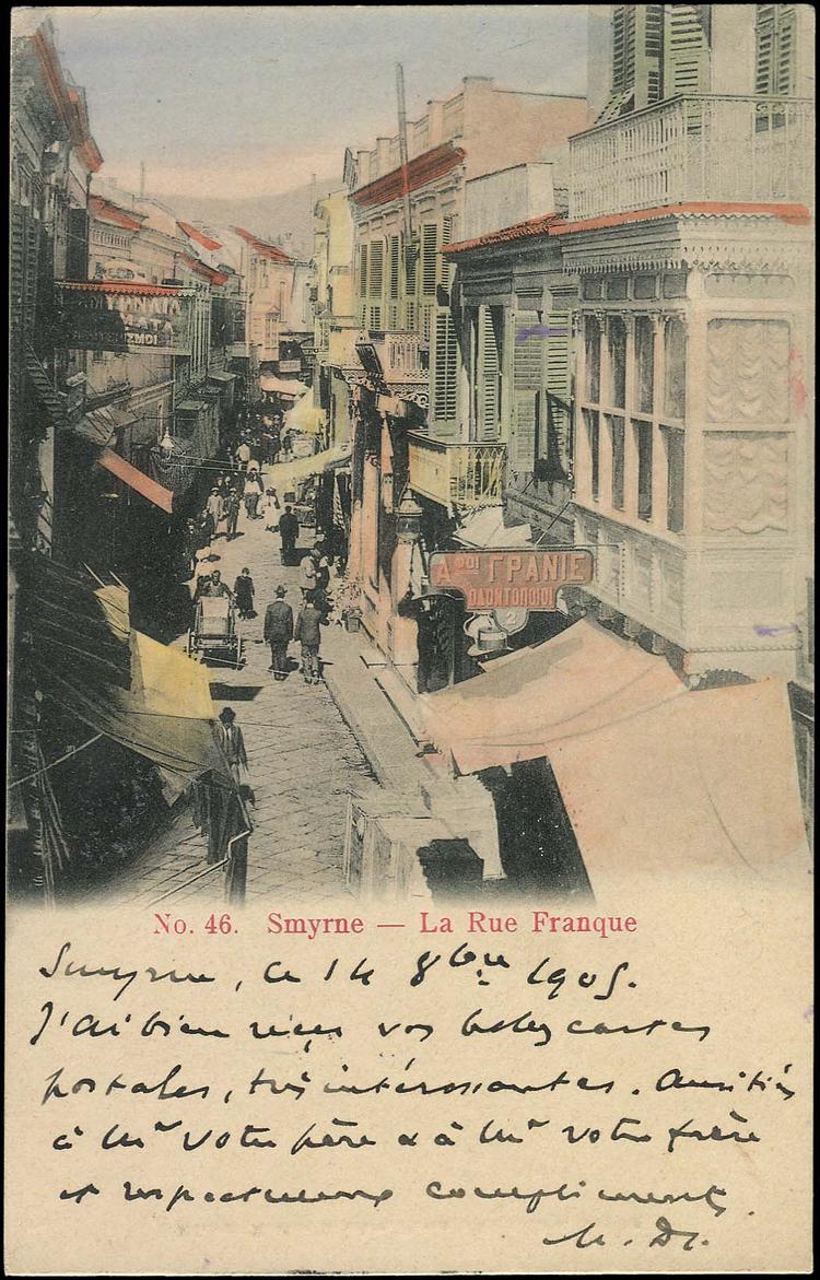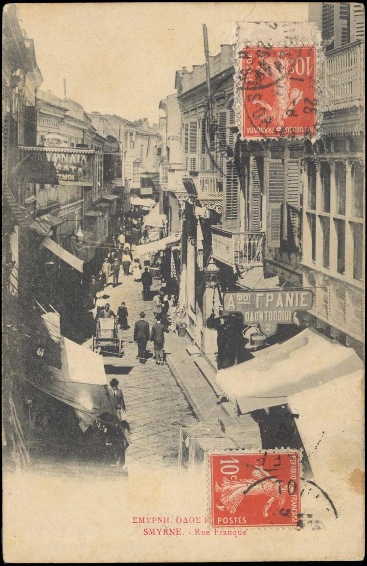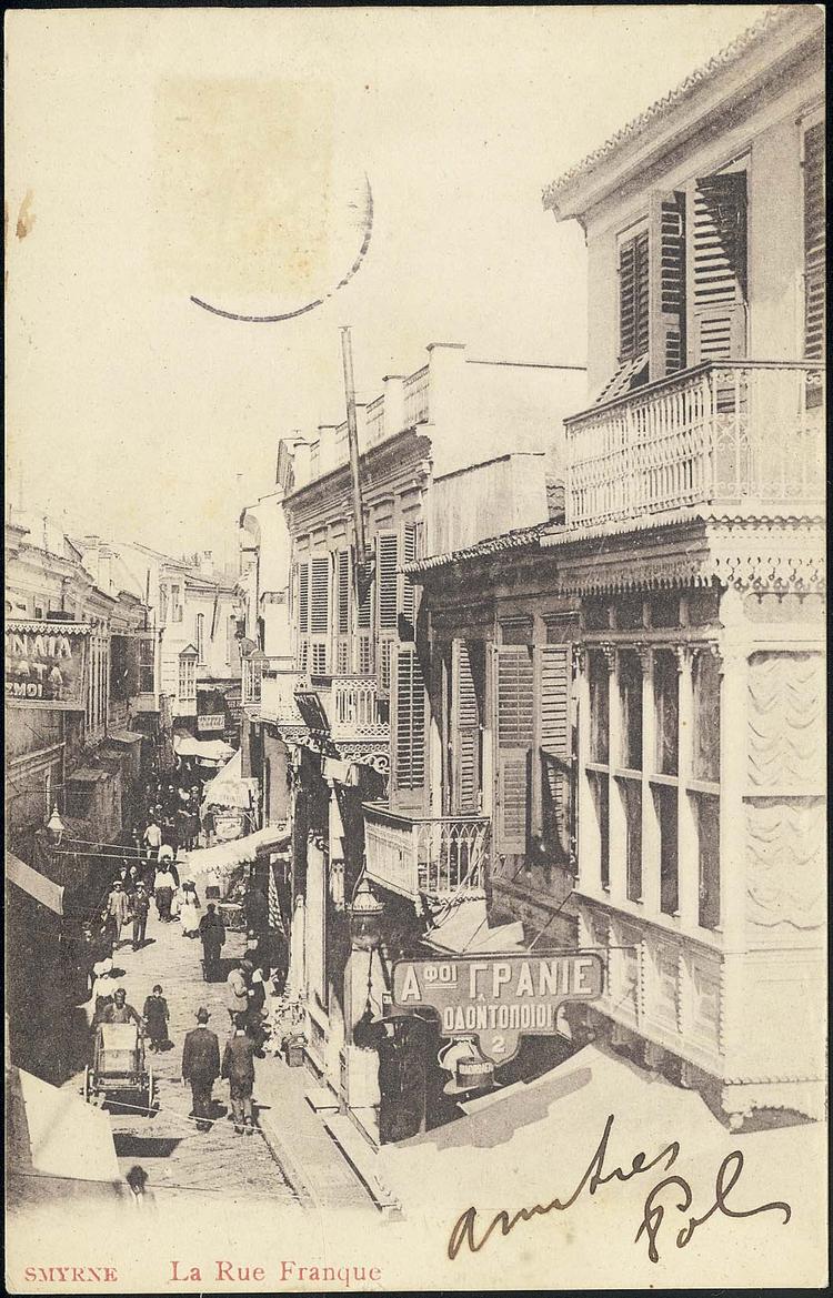 Σύμφωνα με τις μαρτυρίες αλλά και το σωζόμενο φωτογραφικό υλικό, οι δρόμοι της Σμύρνης, εκτός από ελάχιστους που είχαν σχετικά μεγάλο φάρδος, στο σύνολό τους ήταν στενοί και τεθλασμένοι, πάντα όμως καθαροί, λιθόστρωτοι με πλάκες μαλτέζικες ή και καλντερίμια.